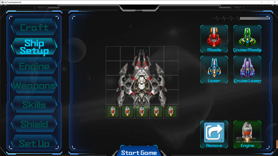 5、ship setup : Assembling weapons: There are mainly 4 types of weapons: lasers, cruise lasers, missiles, and cruise missiles. The difference between laser and missile is whether it is continuous, and the difference between cruising and cruising is whether it automatically attacks the enemy.