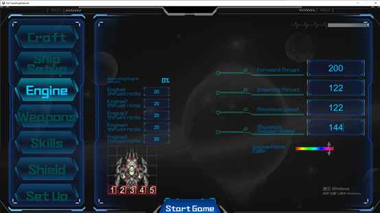 7、Allocate power to each engine and design physical parameters (you need to have physical knowledge such as calculating angular velocity, acceleration, etc. This game completely writes a set of high school physics rules on the dojo)